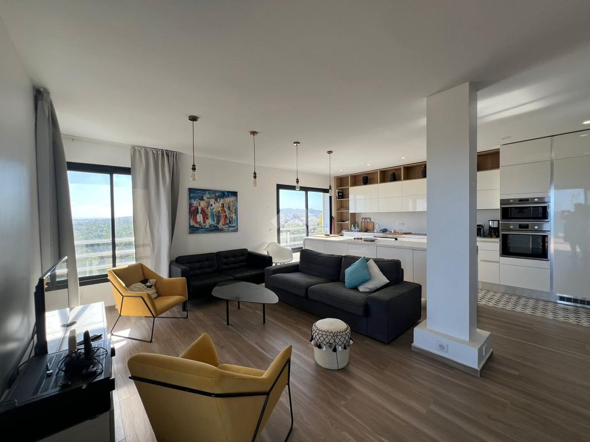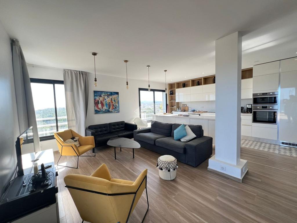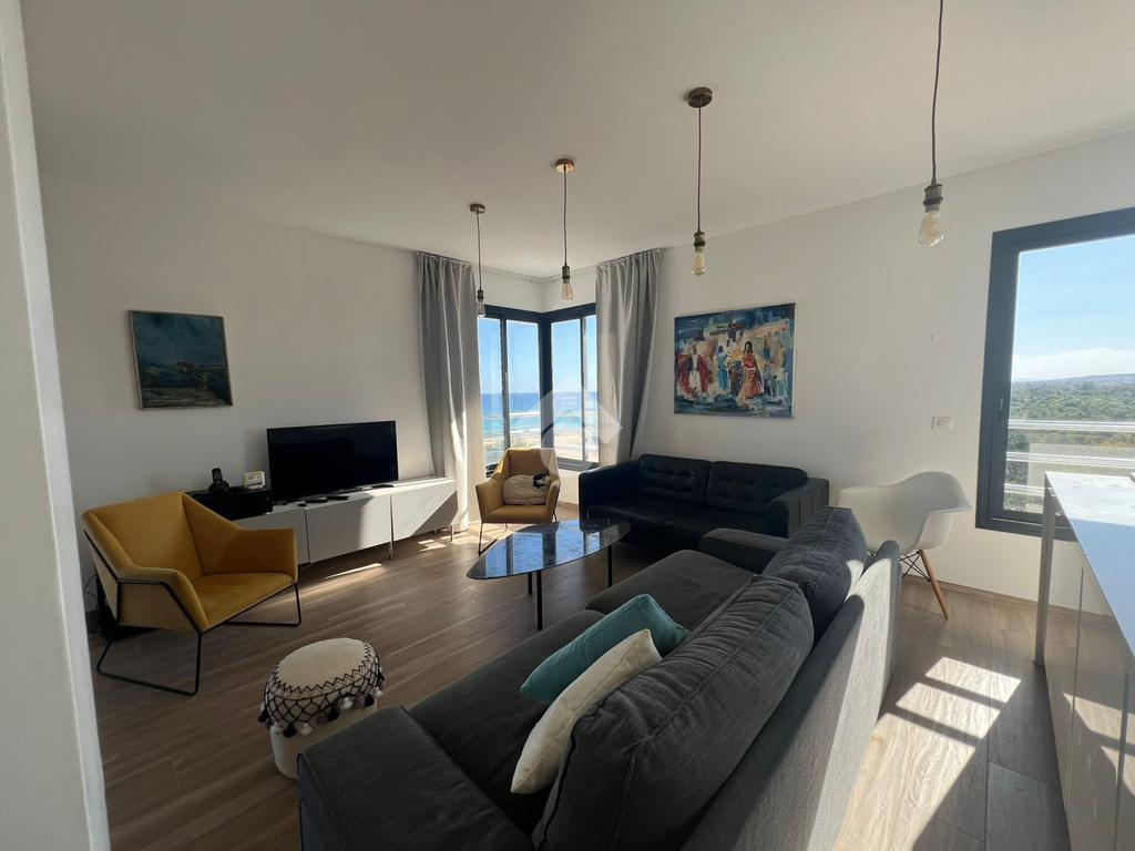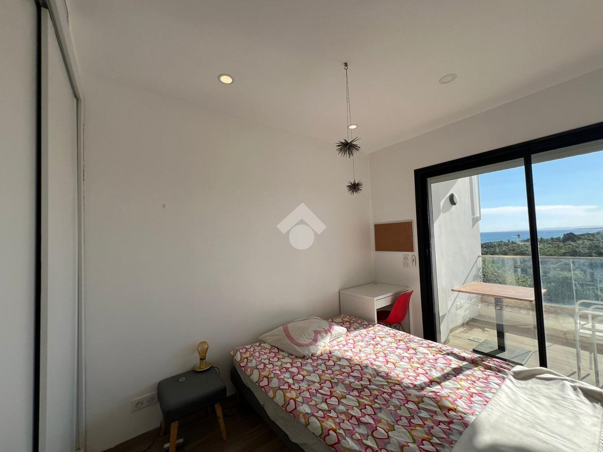 Dès l’entrée, un vaste espace de vie lumineux vous accueille, baigné de lumière naturelle grâce à ses larges baies vitrées qui s’ouvrent sur une terrasse offrant une vue dégagée sur la mer – un cadre idéal pour la détente.