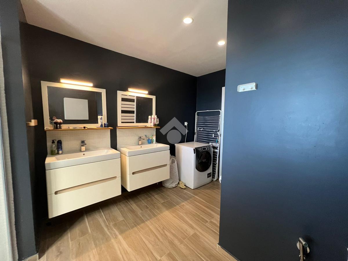 La cuisine moderne et fonctionnelle est entièrement équipée : plaque de cuisson, hotte, four, micro-ondes,lave-vaisselle et réfrigérateur encastré.