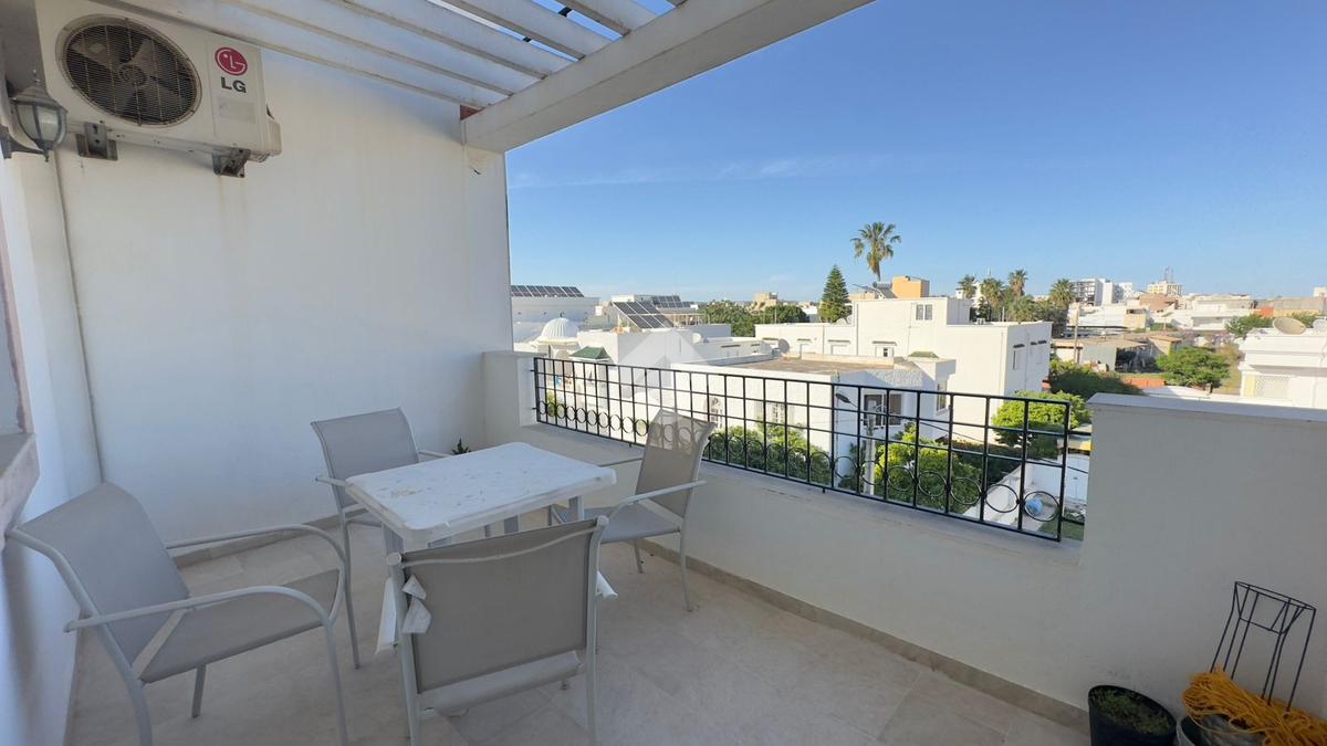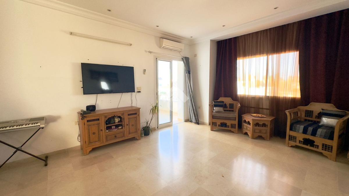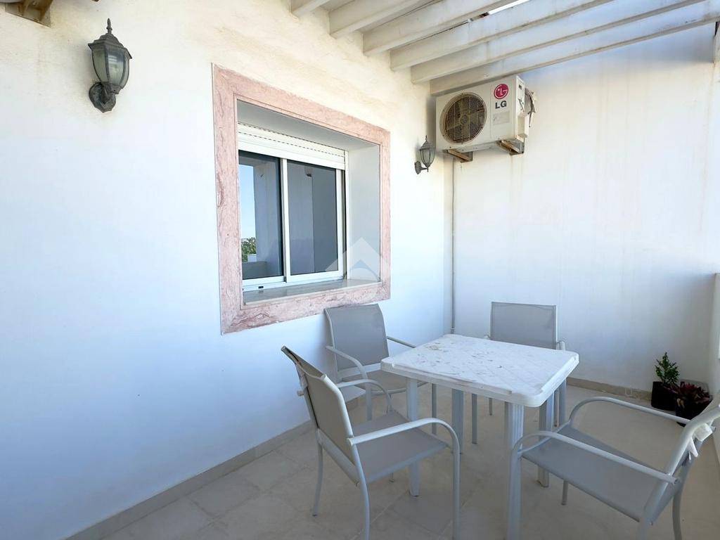 Un salon spacieux s'ouvrant sur un balcon ensoleillé, idéal pour profiter d’un moment de détente.