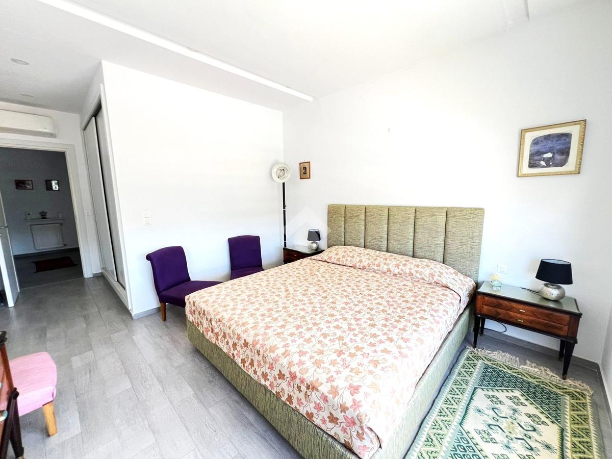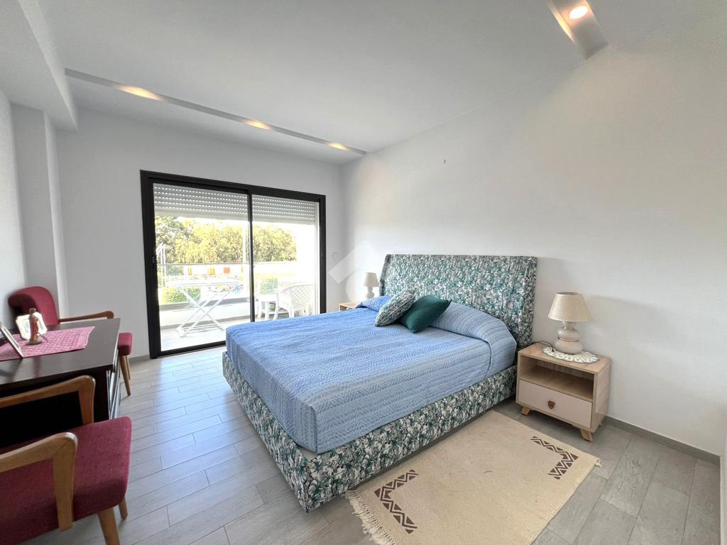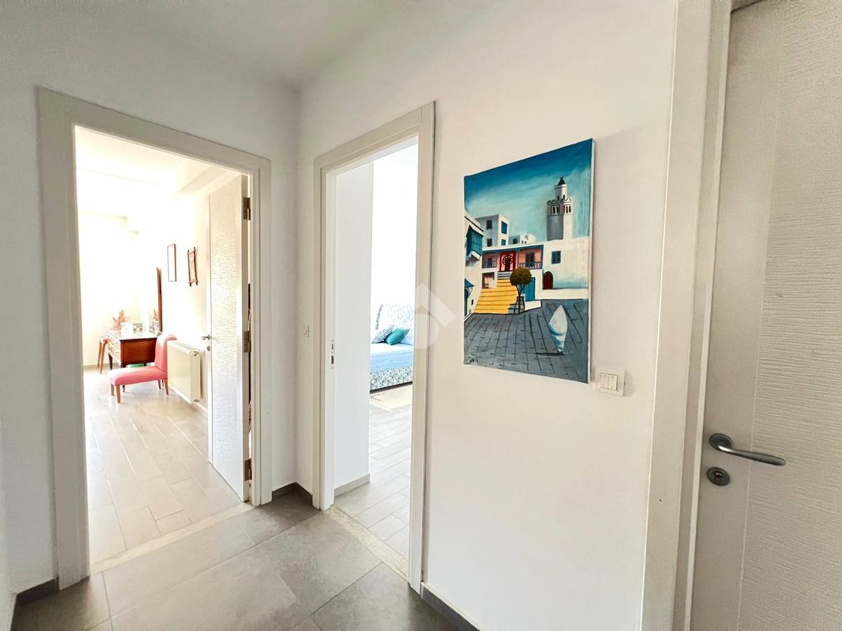 Les grandes ouvertures donnant sur le balcon couvert garantissent une abondante luminosité naturelle ainsi une vue imprenable sur mer.