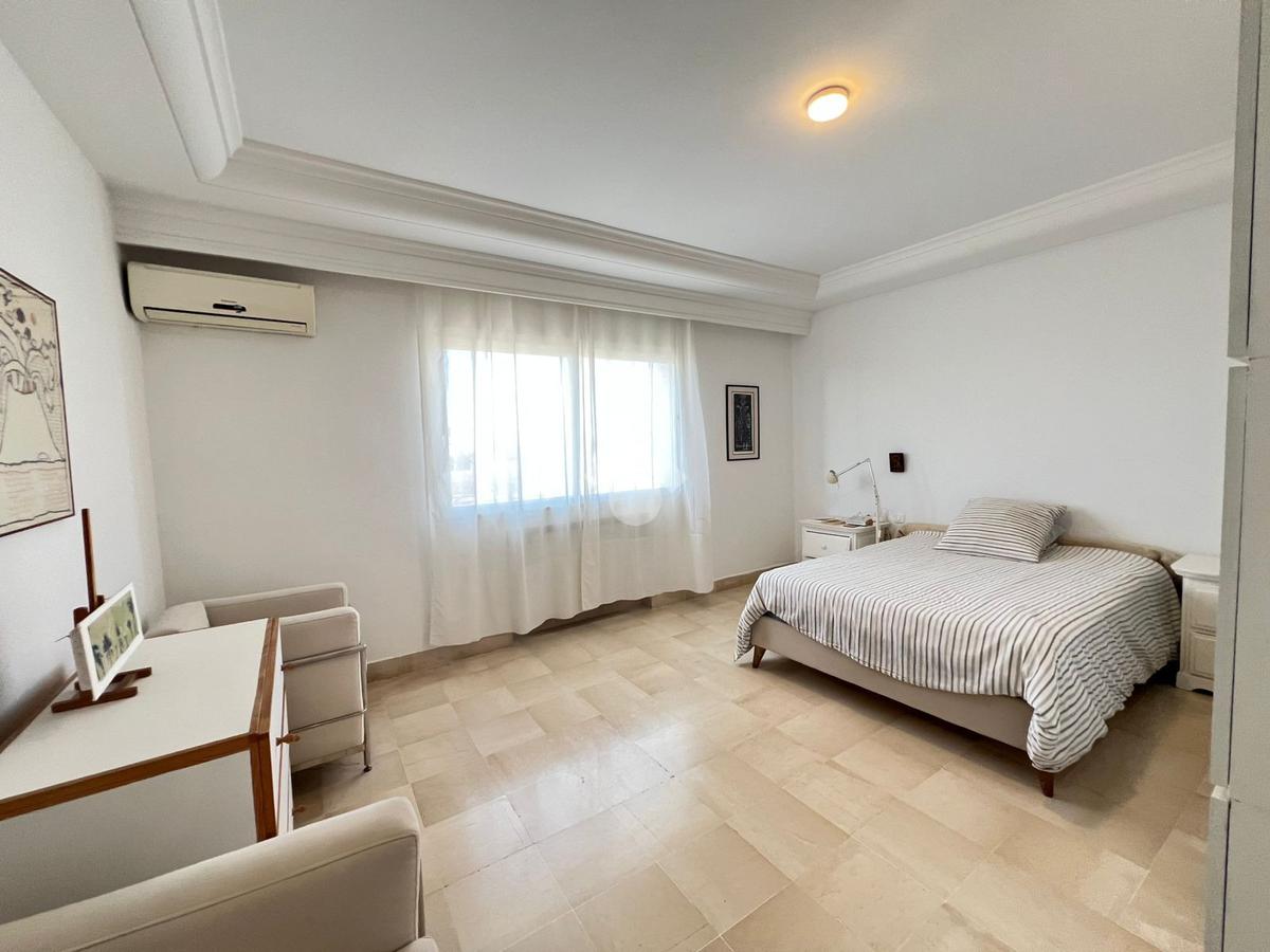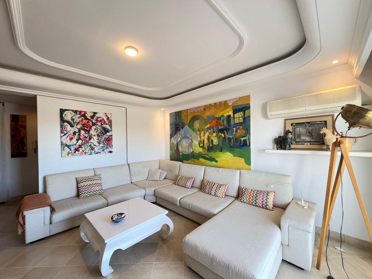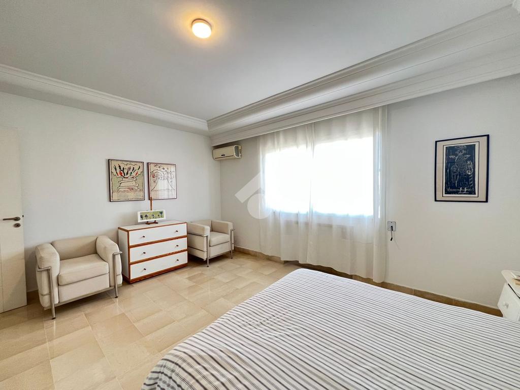 Les grandes ouvertures donnant sur le balcon couvert garantissent une abondante luminosité naturelle ainsi une vue imprenable sur mer.